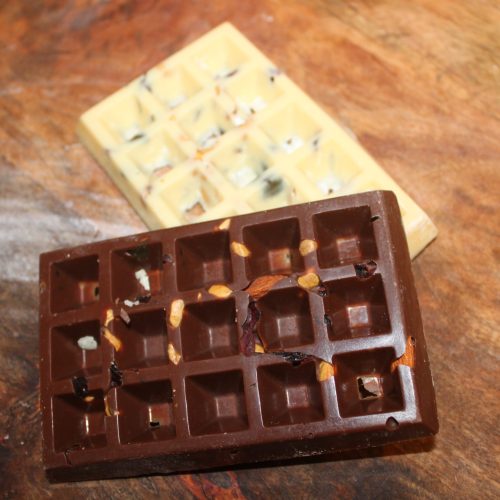 composition : chocolat au lait, mélanges de fruits secs.