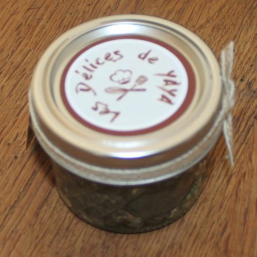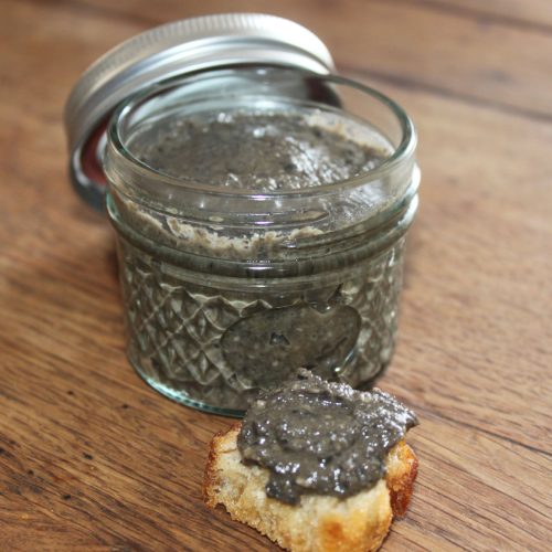 Composition : olives noires dénoyautées, sel, poivre, herbes de provence, ail, cacahuètes grillées, huile d’olive